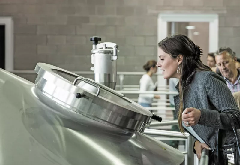 - Rondleiding: start in de bierboetiek met degustatie van een bierpraline, gevolgd door rondleiding (+/- 1,5u) onder begeleiding van een professionele gids, in de modernste brouwerij van Europa;
