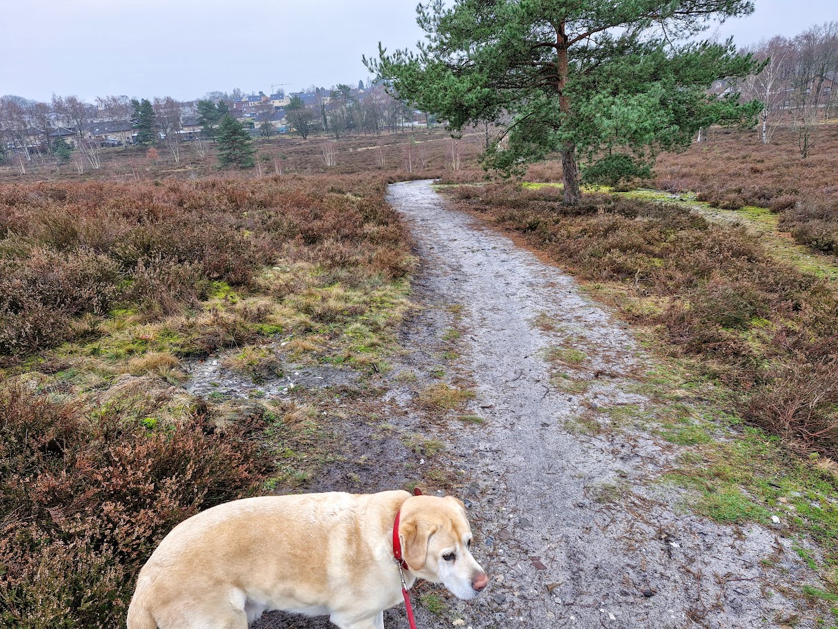 We kunnen kiezen uit een wandeling van 3,7 km (blauw), 6,5 km (rood) of een combinatie van rood en blauw (5 km).