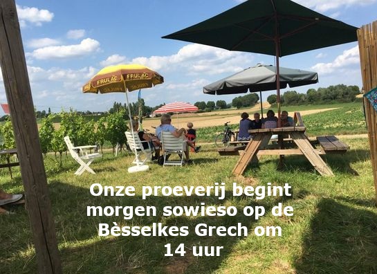 Bij droog weer beginnen we deze middag in de Bèsselkes Grech Vlijtingen met een aperitief tussen de wijngaarden.