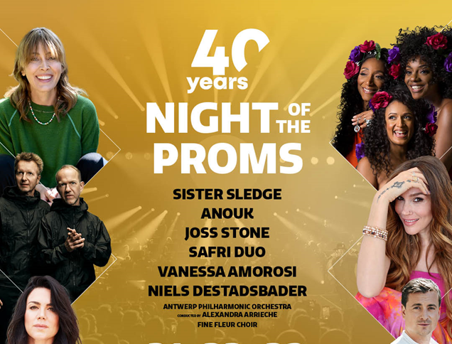 Safri Duo is een Deens percussieduo bestaande uit Uffe Savery en Morten Friis. Ze brakenwereldwijd door in 2000 met de hit Played-A-Live (The Bongo Song), waarin tribale percussie en elektronische beats samenkomen. Exact twintig jaar na hun memorabele optreden tijdens Night of the Proms, keren ze terug. Sister Sledge is een legendarische Amerikaanse discogroep, opgericht door vier zussen uit Philadelphia: Debbie, Joni, Kim en Kathy Sledge. Ze veroverden de wereld in 1979 met de hits We Are Family, Lost in Music en He’s the Greatest Dancer. De Nederlandse rockster Anouk brak in 1997 door met haar krachtige hit Nobody's Wife, die haar meteen op de kaart zette in Nederland en ver daarbuiten. In april kwam 'Set This Thing On Fire' uit, haar vijftiende studioalbum.