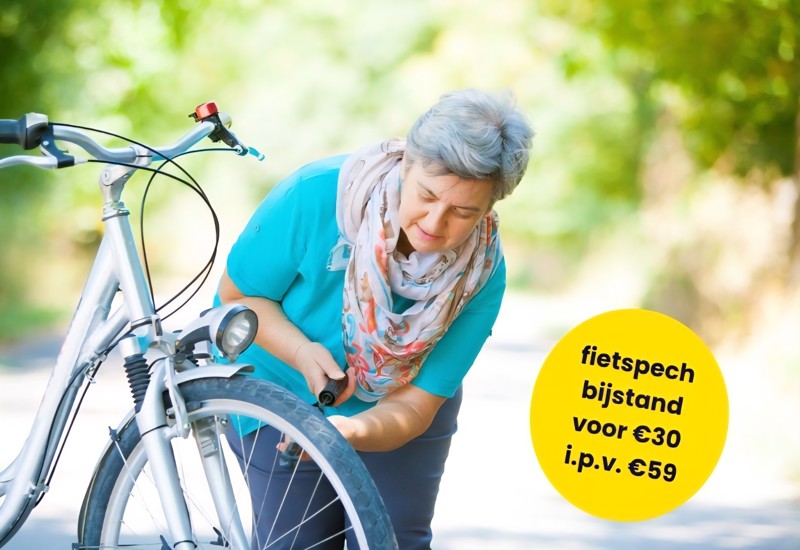 De fietsbijstand geldt voor e-bikes, stadsfietsen, sportfietsen, scooters tot 50cc.