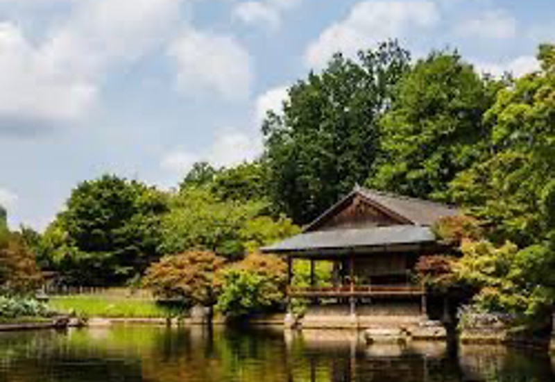 in een zonovergoten Japanse Tuin.