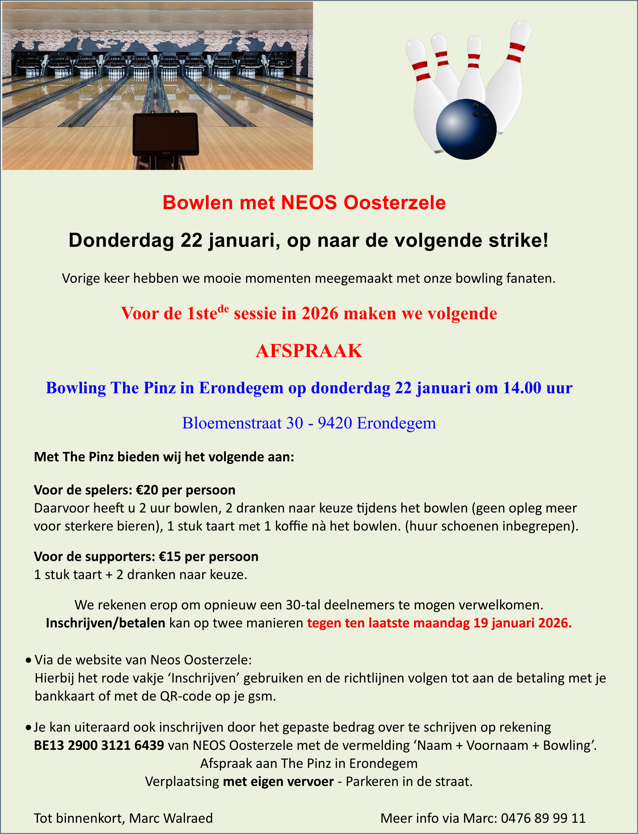 Bowling in Erondegem - 22 januari 2026
