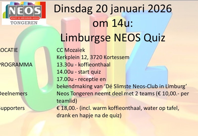 Zoals al meegedeeld tijdens onze uitstap naar Verviers en Francorchamps, overwegen wij deel te nemen aan de Limburg quiz om de slimste club van Limburg te worden.