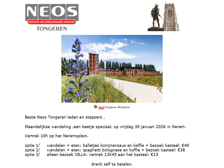 met vermelding “Wandeling januari 2026” en dit vòòr 25/01/26