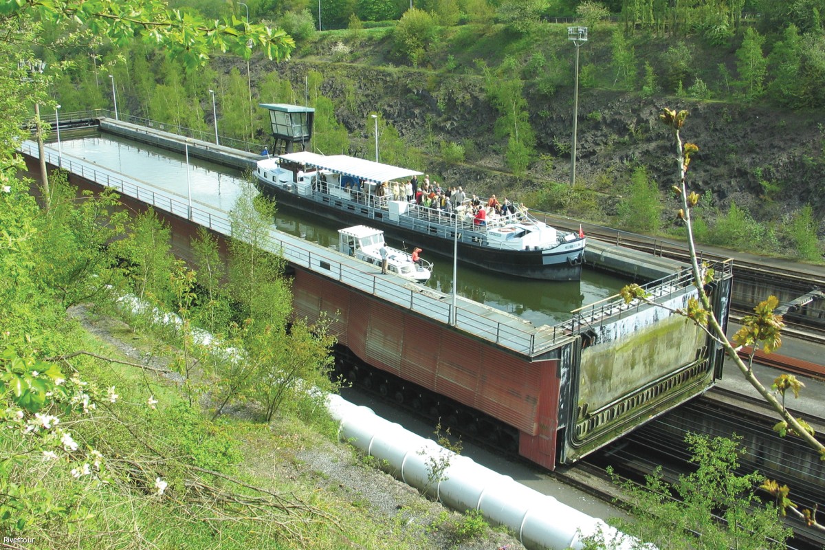 We varen op het kanaal Brussel-Charleroi en maken versassingen mee in de sluis van Lembeek en de grote sluis van Ittre. Aangekomen aan de voet van het hellend vlak van Ronquières, neemt het schip plaats in een groot waterbassin. In deze waterbak 'sporen' we het hellend vlak naar boven en overbruggen we een niveauverschil van 68m. De boottocht gaat verder op het kanaal Charleroi-Brussel.