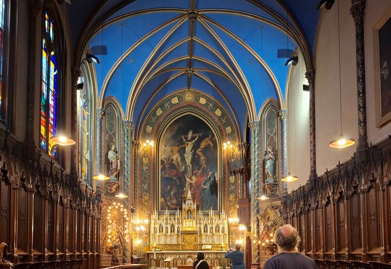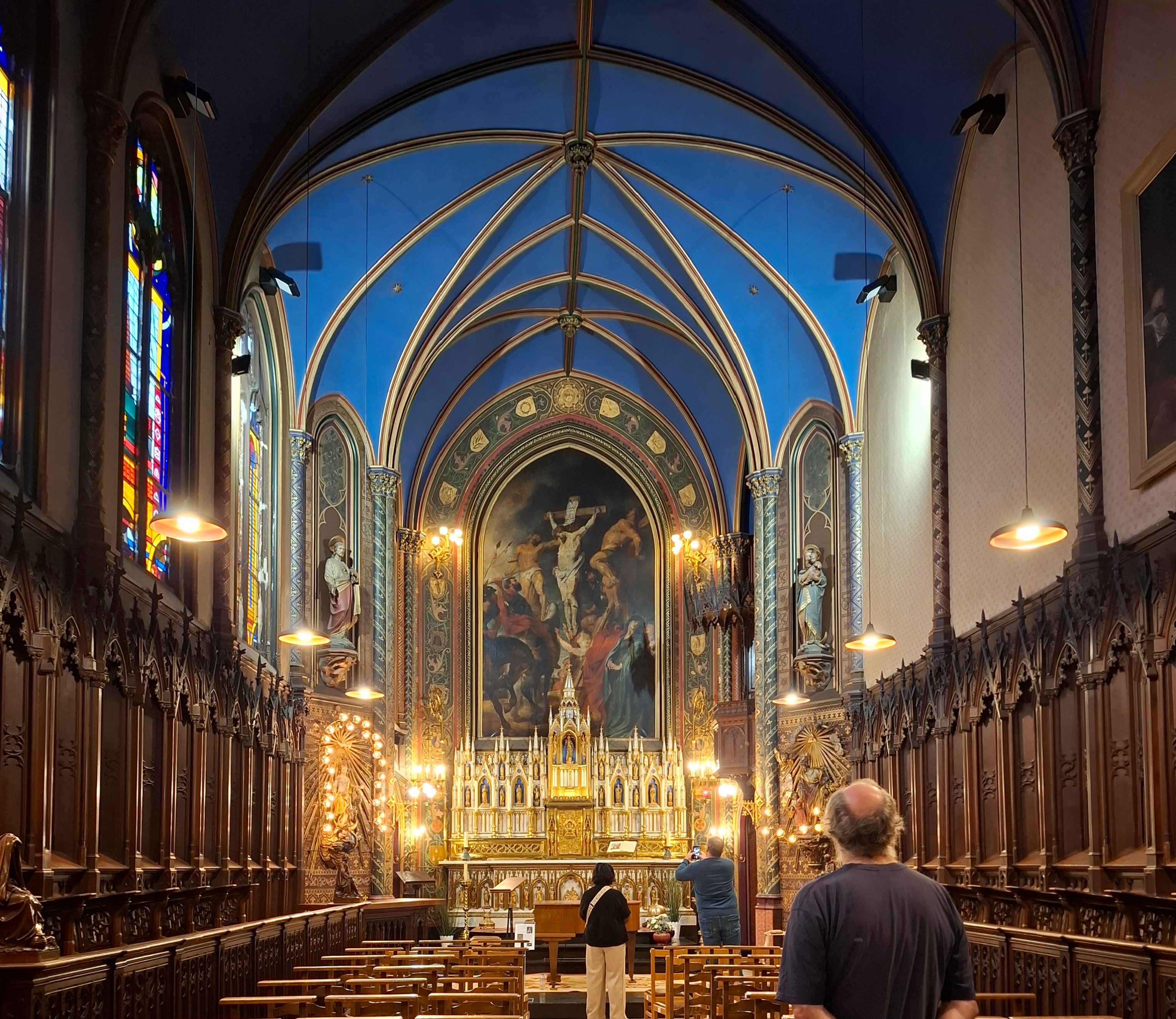 We krijgen een beeld van de geschiedenis van de gebouwen die terug reikt tot de 16de eeuw, de gevel, de inkomhal, de salons, de kapellen, de linnenkamer. De grote kapel in vroege flamboyante neogotiek is echt indrukwekkend maar er is ook een verborgen penitentenkapel. Beide kapellen behoren tot de vroegste realisaties van de Antwerpse neogotiek.